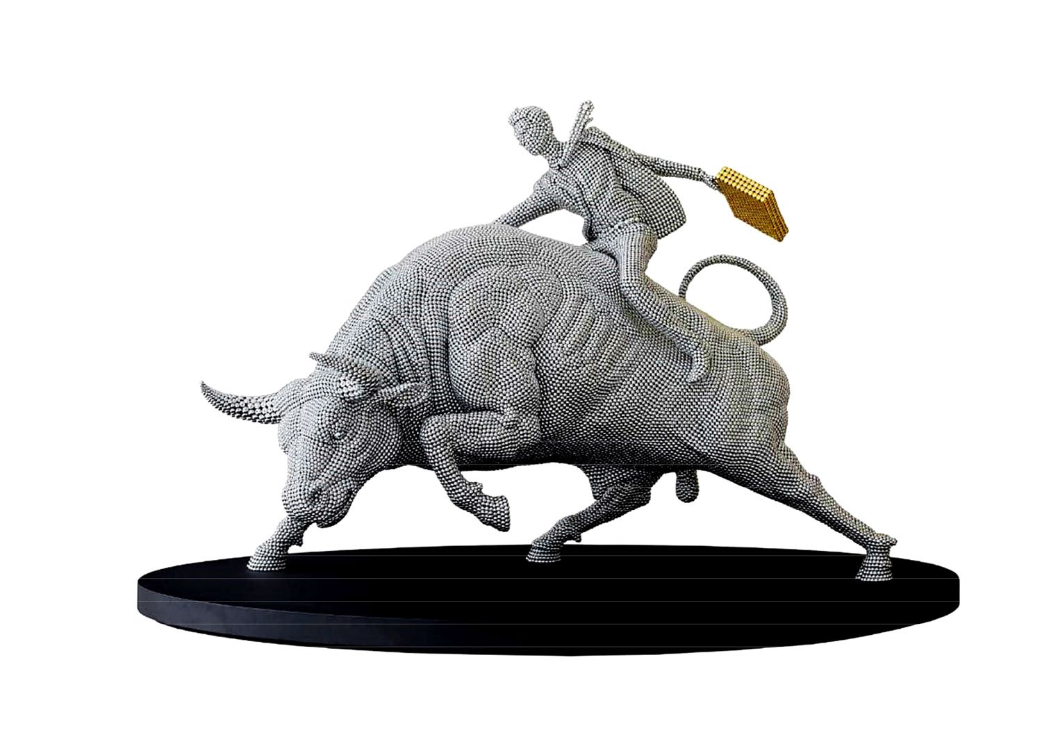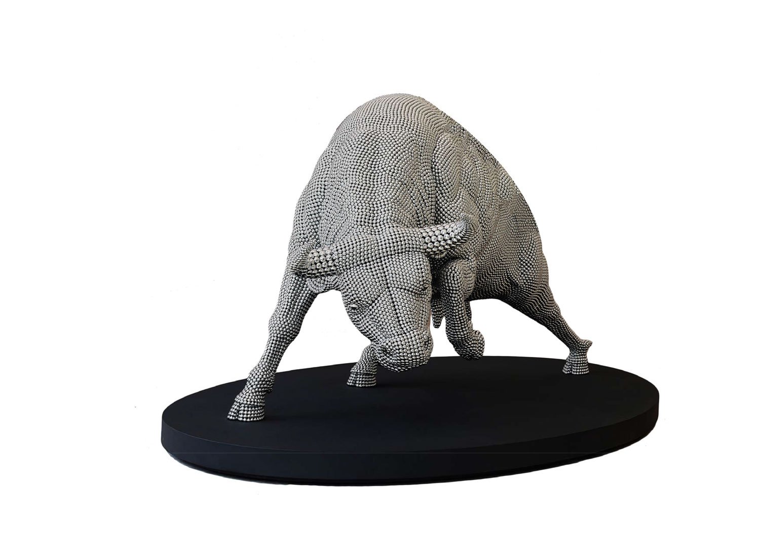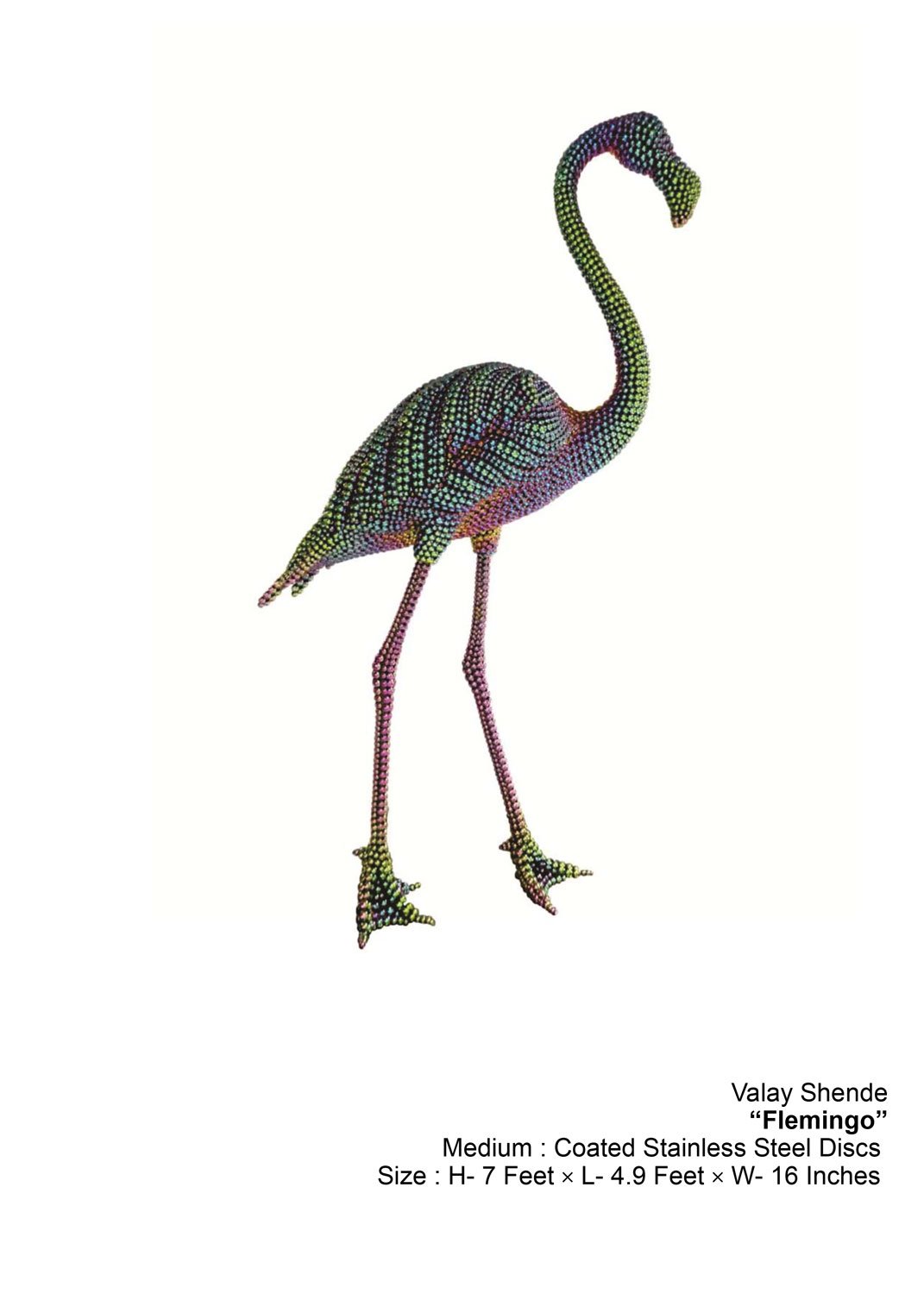 Shende’s practice spans large-scale sculptures, installations, video, and mixed media, all rooted in a keen observation of contemporary society—particularly the stark contrasts between modern industrial life and traditional cultural narratives. His sculptures are often constructed from innovative materials including hundreds of stainless steel discs, pocket watches, copper-plated fiberglass, and other unconventional components, creating works that resonate with both formal brilliance and deep symbolic meaning.
